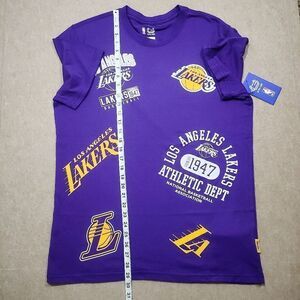 Show your love for the Los Angeles Lakers with this Ultra Game NBA short sleeve t-shirt! The shirt is made for men in size Large. It is perfect for basketball fans. The shirt features the iconic Lakers logo and is officially licensed by the National Basketball Association. Whether you're watching the game or out on the town, this shirt is a must-have for any true Lakers fan. Get yours now and support your team!
