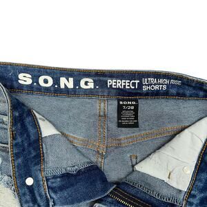 These S.O.N.G. "Perfect" jean shorts are basically summer in denim form—tough enough to handle spontaneous adventures, polished enough to keep your coffee date effortlessly cool. The ultra-high rise frames your waist like it was always meant to be, while the destroyed hem and medium wash give off that lived-in vintage charm. With just the right amount of stretch (cotton-poly-spandex blend), they move with you—whether you're hiking a coastal bluff or strolling downtown. Excellent condition means they’re pre-loved but ready for round two of summer memories.