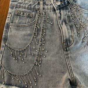 Steal the show these fun rhinestone fringe denim shorts! Just in time for festivals, concerts, and all your summer outings!