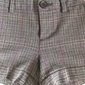 Gently used, good condition, color brown with fuchsia stitching, front/back pockets, front measures at approx 9 1/2" back measures at approx 10 1/2" in length. Can be worn with belt. Belt loop measures at approx 1" Please ask any questions.