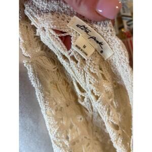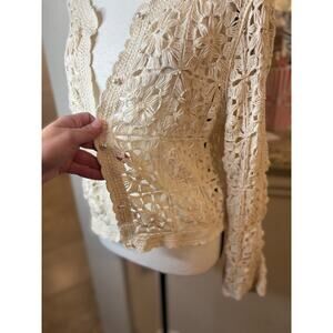 Ultra Pink Beige Crochet Button Down Sweater Top Size M 6-10