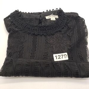 Ultra Pink Blouse Womens Large Black Lace Sheer Long Sleeve Floral Crochet Top