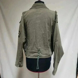 Ultra Pink Large Drab Green Military Inspired Jacket Corset Back Grunge