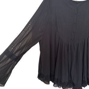 Ultra Pink Plus Size 3X Black Blouse Trumpet Sleeve Flowy