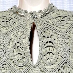 Ultra Pink Sage Crochet Lacey Scalloped Bell Sleeve & Lined Pop Over Blouse (L)