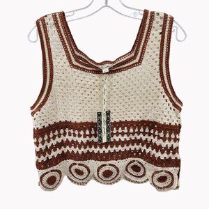 Ultra Pink Womens L Crochet Top Pants Set Boho 2 Piece Outfit Brown Cream Knit