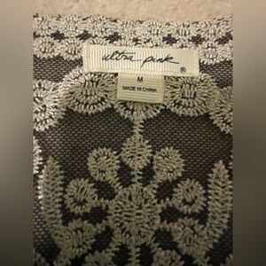 Like new Ultra Pink medium black cami with mesh and silver embroidered overlay. Overlay is sheer. Attached cami has adjustable spaghetti straps. Armpit to armpit 18” and centerback length 24”. Very pretty! Tote 19.
