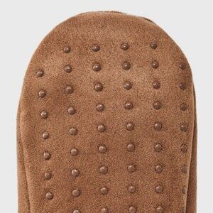 Ultra Suede Faux Shearling Lined Slipper Socks with Huggable Heel & Grippers