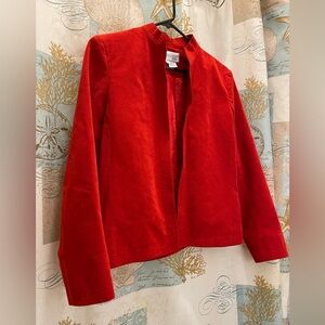 Ultra Suede Women’s Open Front Solid Red Suit Blazer Jacket Professional Wear 10