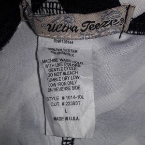 Ultra Teeze Women's Skirt Size Lg Black & White Geometric Design, Sexy Stretch Knee length Skirt. Made In The USA.