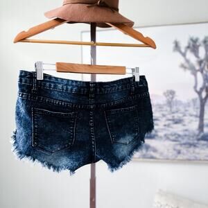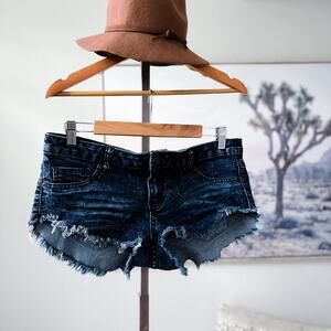 Ultra lowrise factory distress washed raw cut y2k jean shorts 9