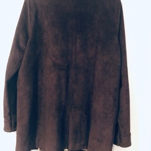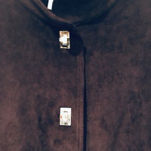 Worn one time, beautiful chocolate brown ultra suede jacket with gold grommets closures. Inside has gold braids to keep it straight. Pockets! Incredible quality