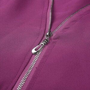Perfect for those seeking stylish women's blouses, v-neck zip tops, business casual shirts, or trendy purple tops for layering. Ideal for everyday wear, office outfits, travel fashion, and going-out looks. This versatile blouse pairs effortlessly with jeans, trousers, or skirts and fits seamlessly into both capsule wardrobes and seasonal refresh collections. Great for fans of minimalist chic, modern streetwear, polished professional looks, or classic boho layering. Whether you're looking for fashionable women's clothing, elegant work tops, or standout statement pieces, this purple zip-front blouse delivers the perfect balance of comfort, quality, and bold color for every occasion.
