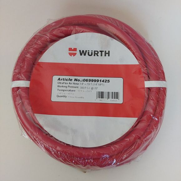 UltraFlex Air Hose WURTH 1/4" x 25FT 0699991425 1/4" MPT Pressure Compressor