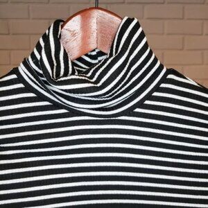 Ultra Flirt Juniors Rib-Knit Black/White Stripe Turtleneck Tunic