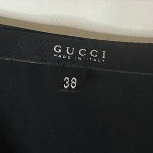 Obsessed is an understatement. This iconic Gucci dress from Tom Ford’s legendary Fall/Winter 2003 collection is a collector’s dream. Crafted in jet-black silk, it stuns with a scoop neckline, sultry cold shoulder cut, fluid draping at the sides, and a perfectly placed slit at the hem. Finished with tonal stitching and a concealed zip closure at the back. Very rare, runway-worn design in Size IT 38 / US 4.