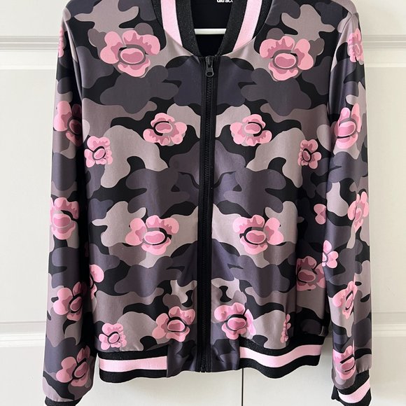 Like-new Ultracor Jacket with a camo/floral pattern of pinks, black and greys. Super silky soft material. Size XS.