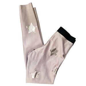Ultracor Silk Knockout Foil Star Legging Tight Pant Light Pink Silver Foil Star Print