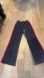 Blue pant with grids and velvet red stripe on side. Beautiful pant, only worn 2 times. Hem is raw cut. High waisted. Measures roughly 41-42 inches from top to bottom. Waist roughly: 13 inches, length from top of waist band to very bottom, 40 inches. Inseam roughly 29. Please look at size m on their website if these measurements aren’t enough. It is basically a size medium and is relaxed so has room for extra if you are a bit larger. The hems are raw cut