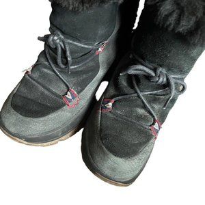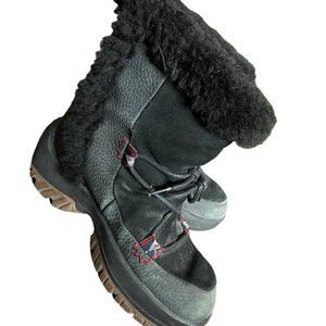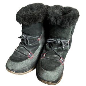 Ulu Womens Black Leather Round Toe Pull-On Snow Boots Size 6.5