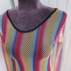 Uluwatu Color Mesh Netted See Through Beach Coverup Top Dress Long Sleeve Sz S