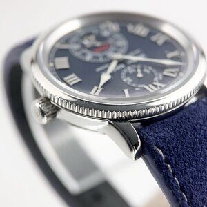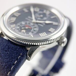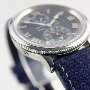 Condition: The watch is in pre-owned condition. AR coating has scratches throughout. There are a few hairline scratches on the case but nothing too significant. The leather strap is in good condition with lots of life left. Overall the watch is in nice shape.