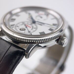 Condition: The watch is in pre-owned condition. There are minor scratches throughout the case but nothing too significant. The leather strap is in good condition with lots of life left. Overall the watch is in nice shape.