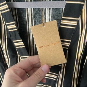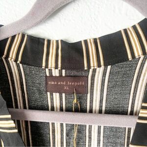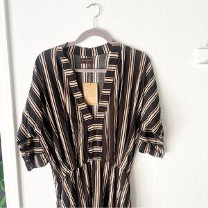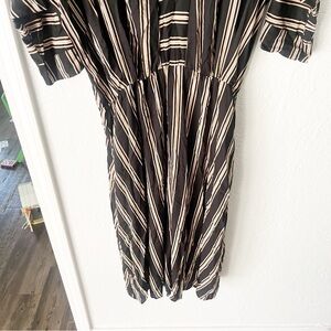 DETAILS: Uma & Leopold dress women's XL, Anita style, black and tan vertical stripes, flowy dolman sleeves, front slit, pockets. Rayon, hand wash.