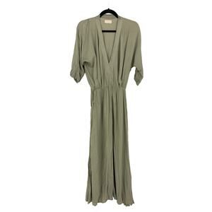 Uma and Leopold Uma Maxi Kaftan Dress Women's Sz Small Light Olive Green V-Neck