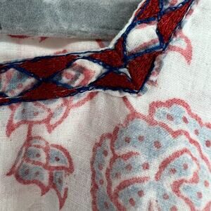 Umber & Ochre Handwoven Cotton Peasant Top Floral Sz XS/S Cream Embroidered Neck