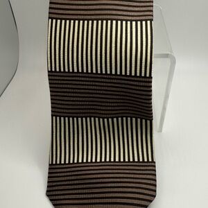 Enhance your formal attire with this elegant striped tie. Featuring a sophisticated brown and black pattern, it's perfect for any occasion.