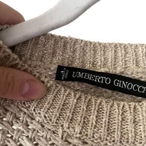 Umberto Ginocchietti Chunky Fisherman Knit Sweater Top Linen Coastal Beige Tan