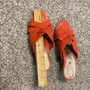 Stylish leather upper sandals. Crisscross strap design. Comfortable slip-on style.