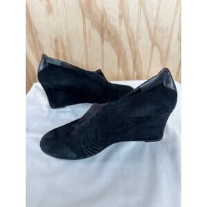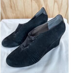 Umberto Ruffini Signature Black Leather & Suede Stretch Wedge Shoes Size 8