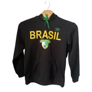 Umbro Brasil Soccer Hoodie Men's Size Large Pullover Black Nationa Team