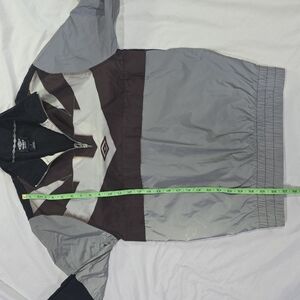 This windbreaker is in nice condition with the only known flaw being that the velcro for the center pocket is starting to come loose as seen in the last picture. Please ask any questions you think you may have to ensure a confident purchase.