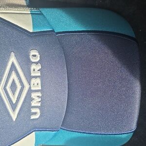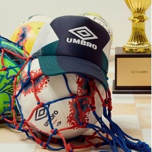 Umbro cap with blue front and white mesh back. Features bold logo design.