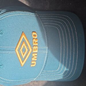 Umbro hat in vibrant teal with gold logo. Sporty and stylish.