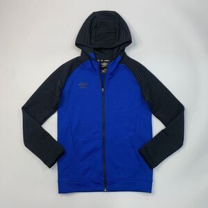 Umbro Sweatshirt Mens L Large Black Blue Hooded Lightweight Full Zip Soccer