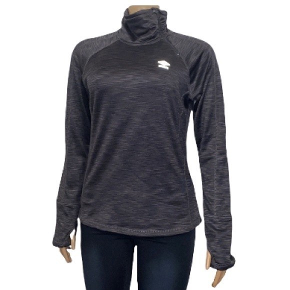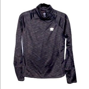 Umbro Quarter-Zip Fleece lined active Pullover base layer gray Gray Moisture wicking Front reflective logo Thumb holes excellent condition measurements are approximately in inches armpit to armpit 20” armpit to cuff 24” length 25”