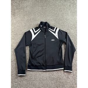 Umbro Track Jacket Womens Medium Black White Full Zip Soccer Polyester Coat *