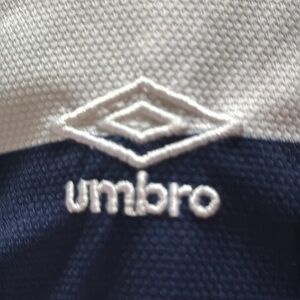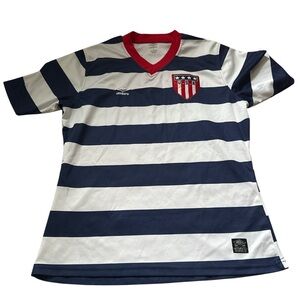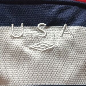 Umbro USA blue white stripes red trim short sleeves soccer jersey Sz L