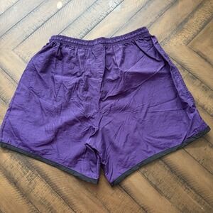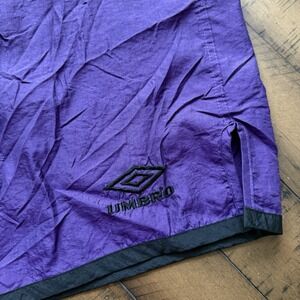 Umbro Vintage 80s 90s Nylon Shorts Purple Black Trim USA Size L Soccer Elastic