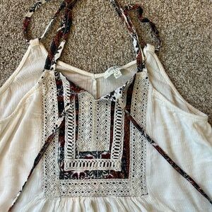 Umgee A Line flowy cross back tank. Peasant. Boho. Hippie. Lace and floral. Med