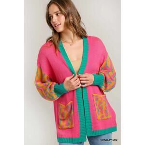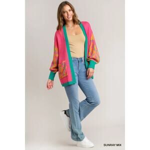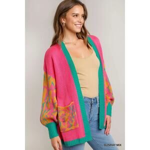 Umgee Animal Print Long Sleeves Relaxed Fit Open Front Sweater Cardigan | Sunray