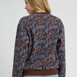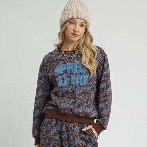 Umgee "Apres All Day" Blue on Chocolate Brown Graphic Cropped Sweatshirt