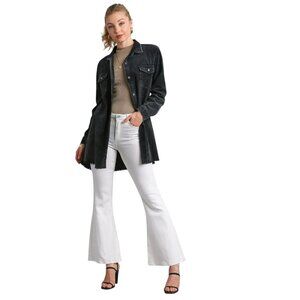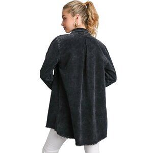 Umgee Ash Black Mineral Washed Corduroy Shacket with Raw Edge Hem