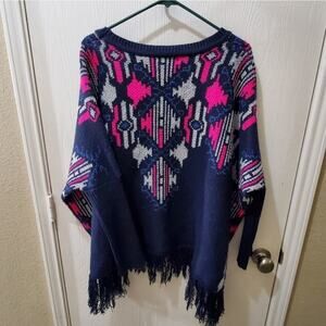 Umgee Aztec oversized fringed statement sleeve sweater size s/m