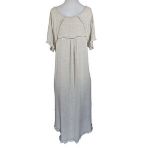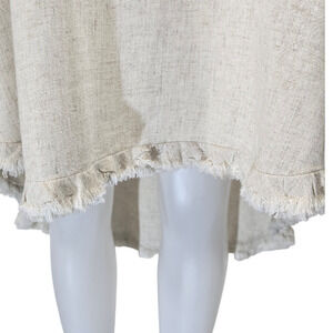 Umgee Beige High Low Fringed Hem Linen Blend Lagenlook Pockets Women's Dress L