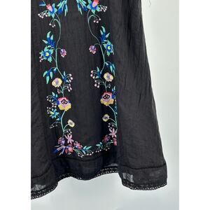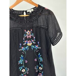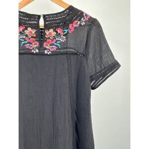 Umgee Black Babydoll Embroidered Cotton Dress with Lace Trim - Women's Medium